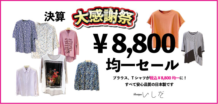 決算 大感謝祭2025 Boutique 2025.05.27 決算 大感謝祭夏物トップスを謝恩価格でご紹介!すべて安心の日本製です。 勿論、夏から初夏へ。全アイテムフル展開。実際に手に取って、袖を通してお確かめください。素材の良さをシルエットのゆったり感を心ゆくまで味わって下さい。 下の写真をクリックすると大きなサイズの写真で。